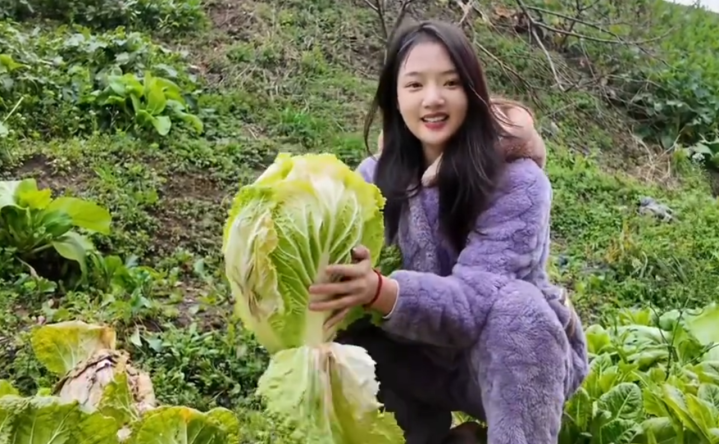 最近,一稔紫色厚款寝衣逛街、在菜园摘菜的任敏在短视频平台火了。