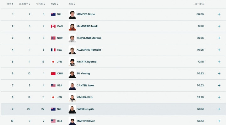 中国选手葛春宇以第25顺位出场,出现诞妄获取21.70分,另又名中国选手杨文龙也出现诞妄,开云体育获取16.96分。